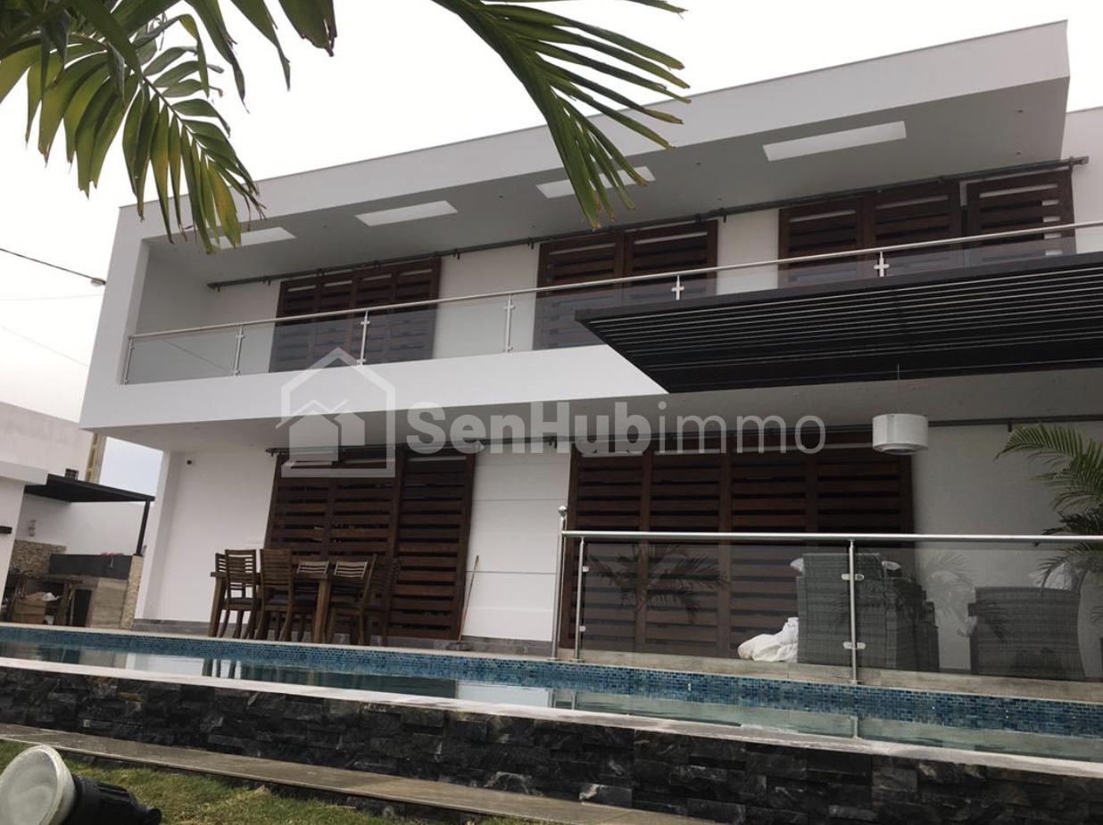 Saguera Immobilier met en vente une grande villa utra-moderne située dans un quartier résidentiel de la Somone. Elle est construite sur un terrain de : 600m2 Avec: 4 chambres avec salle d'eau 1 chambre pour gardien 2 cuisines américaines 1 double garage 1 piscine 10x4 1 espace avec pelouse 1 débordement d'eau La villa est vendue avec un mobilier neuf.