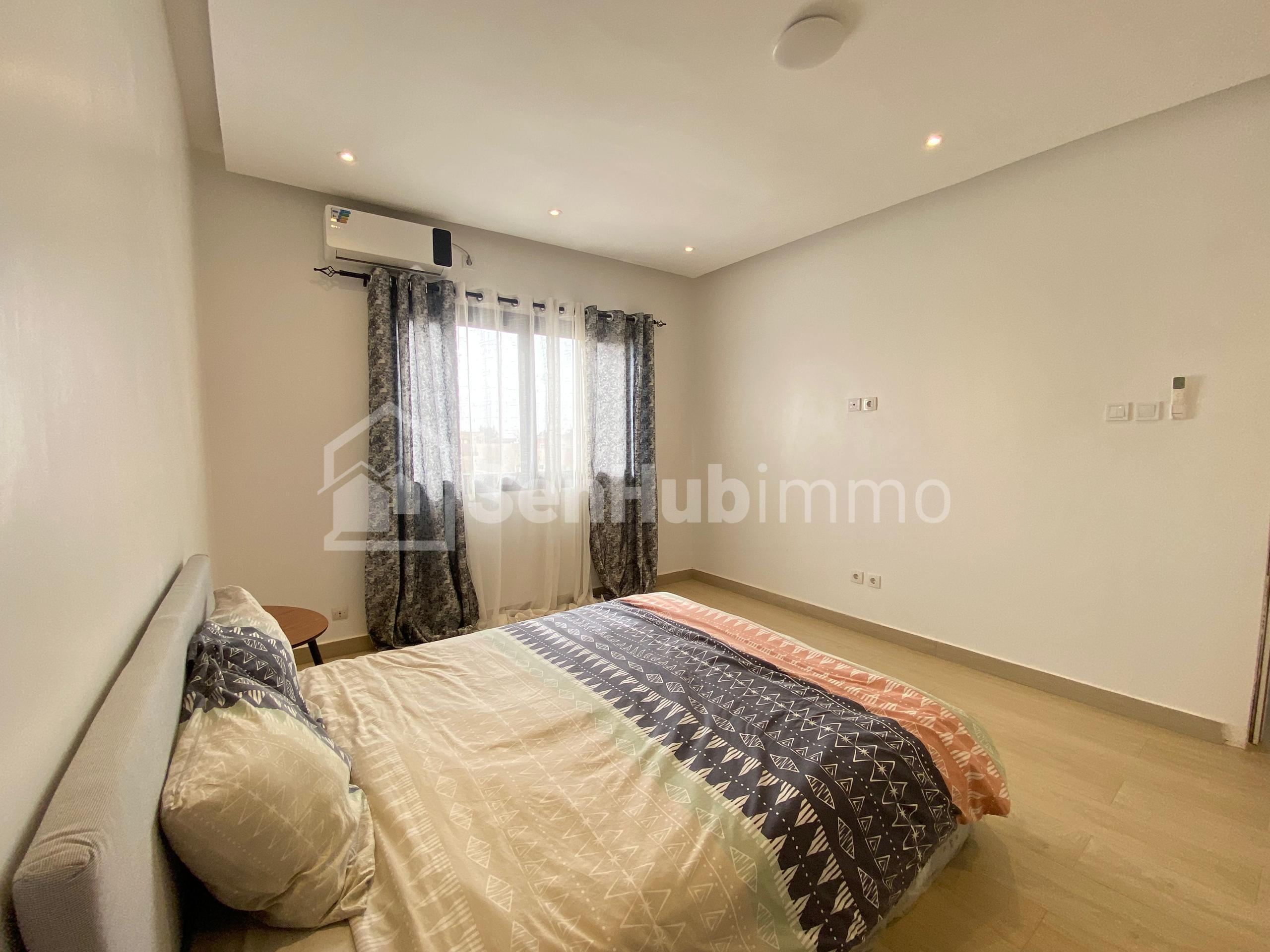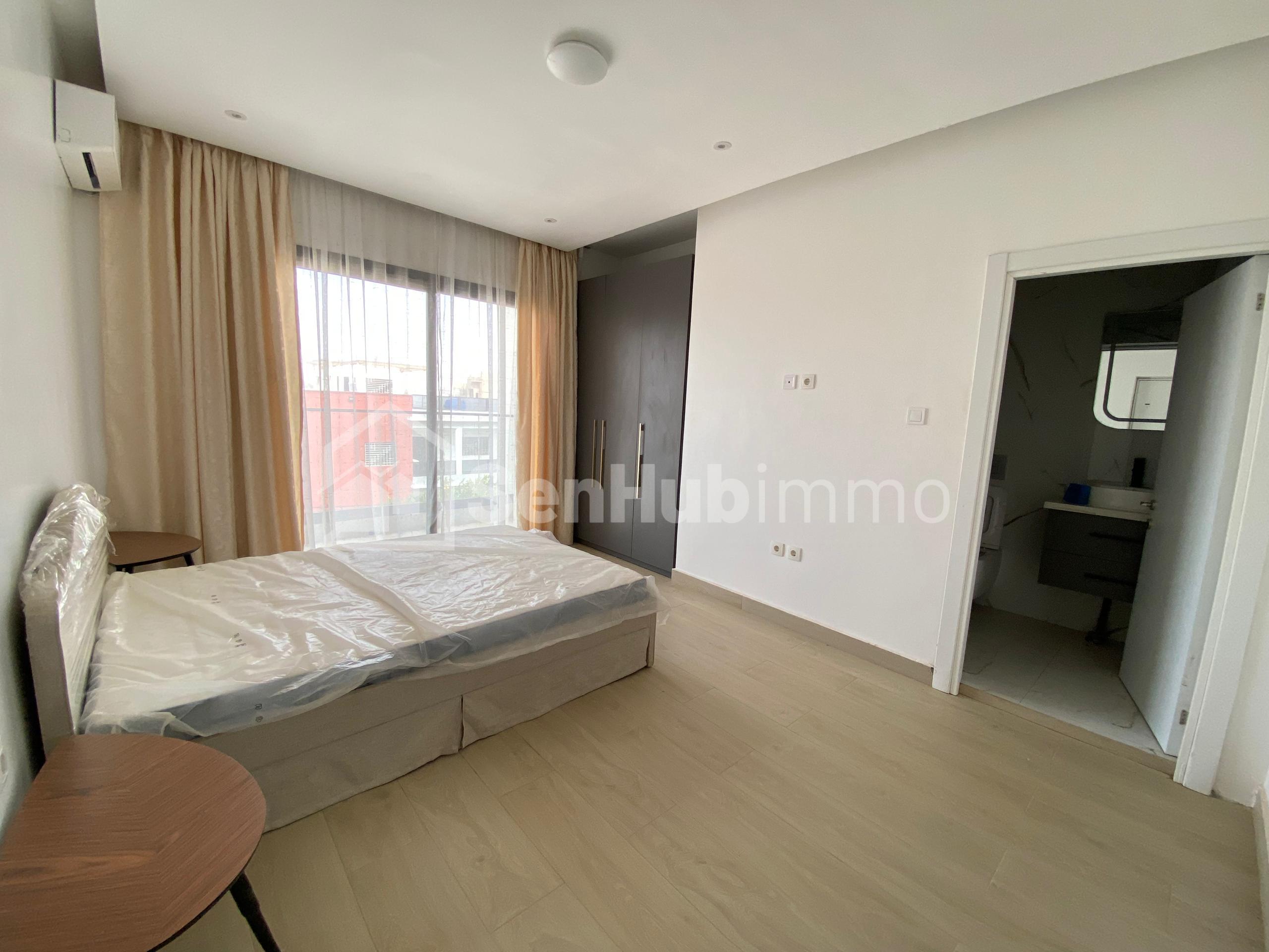 Séjournez dans un appartement F3 meublé de haut standing, situé dans une villa neuve et sécurisée 24h/24, à Sendou, à quelques pas de la mer a et à seulement 15 minutes de