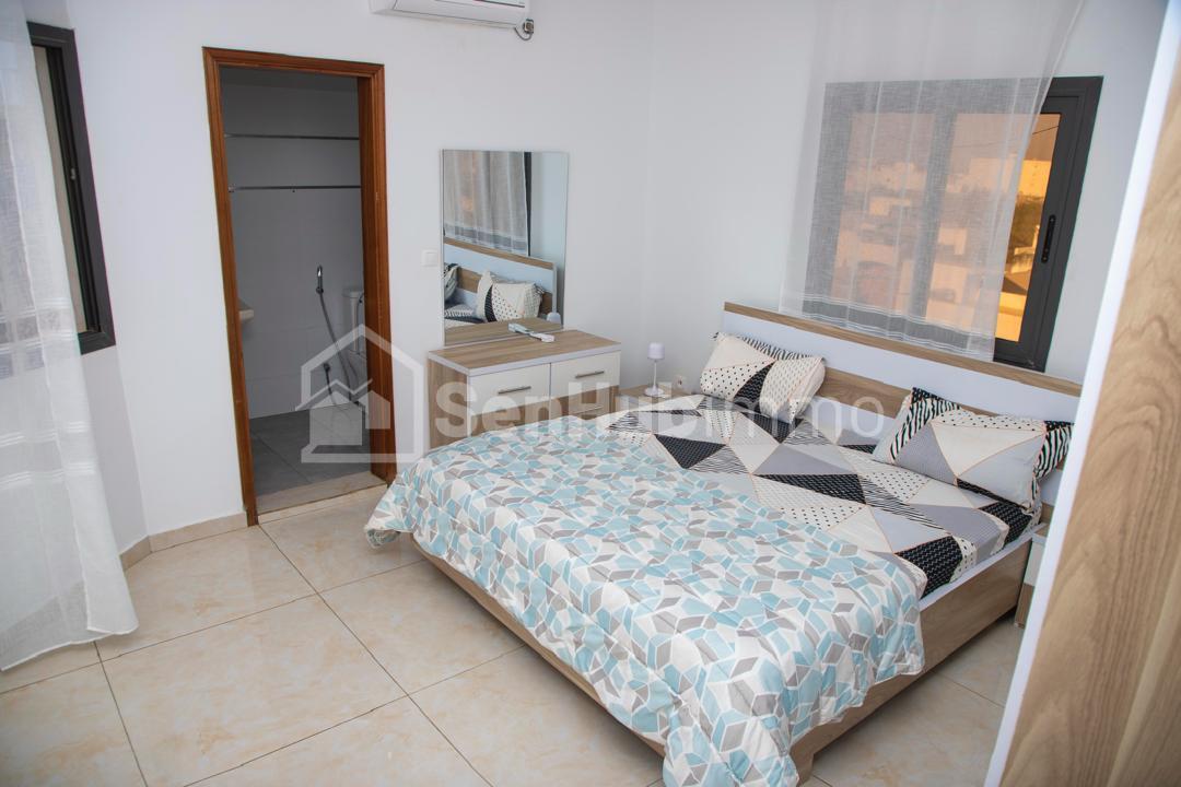 Appartement F3 A4: 140m2 – Max 4 personnes 40.000fr la nuitée à partir de 3 nuits 1.050.000f location mensuelle (à partir de 3 mois) 2 chambres avec 2 salles d'eau, salon, cuisine équipée table à manger, balcon et toilette visiteur Toutes les pièces sont climatisées, chauffe-eau, internet illimité, service de nettoyage un jour sur 2 du lundi au samedi Sécurité 24h/24 et 7j/7