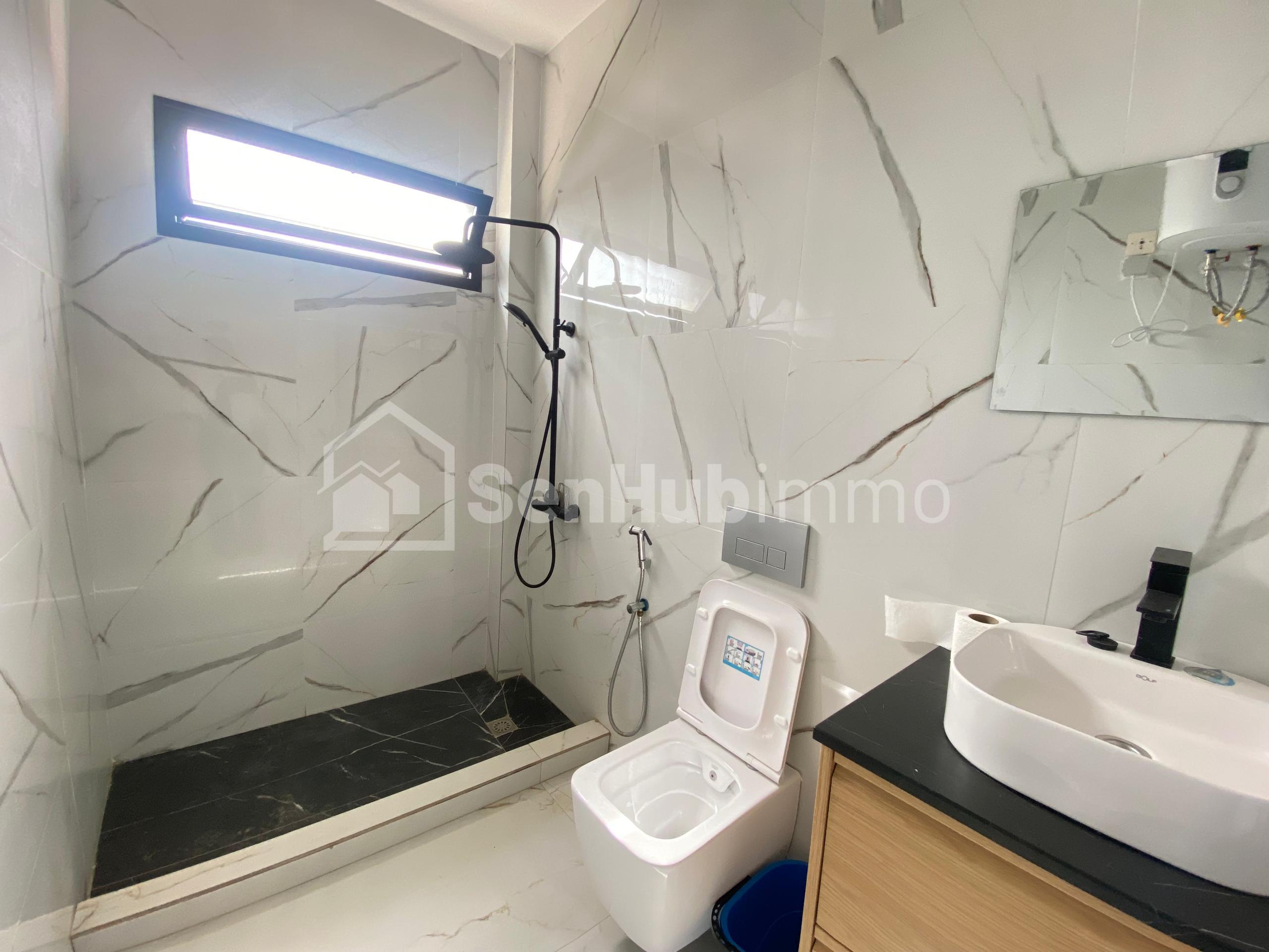 Séjournez dans un appartement F3 meublé de haut standing, situé dans une villa neuve et sécurisée 24h/24, à Sendou, à quelques pas de la mer a et à seulement 15 minutes de